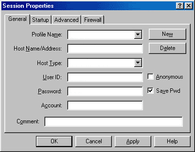 - On the Session Properties screen, click on the General tab. Here you have several fields that you need to fill out.