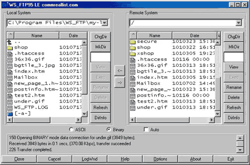 use the Auto setting please note that it is very important to transfer images in Binary mode.
